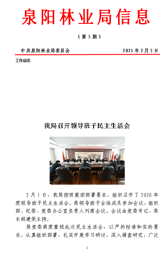泉阳林业局信息2021年第5期