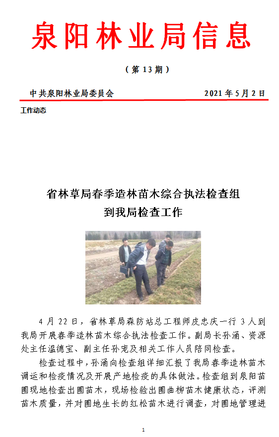 泉阳林业局信息2021年第13期